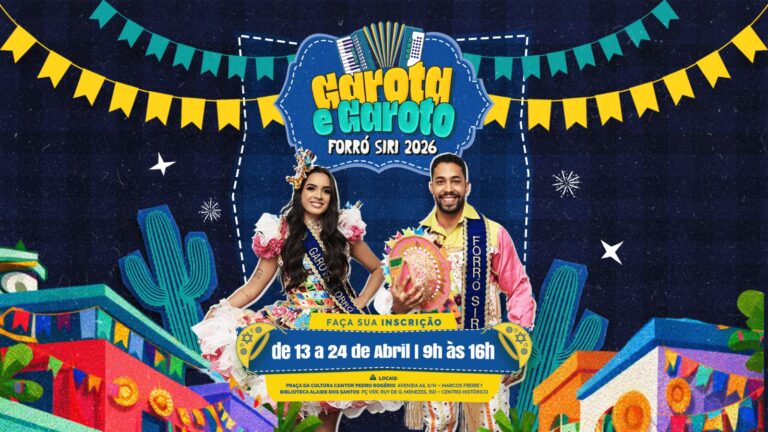 A Prefeitura de Nossa Senhora do Socorro abriu as inscrições para o concurso Garoto e Garota Forró Siri 2026, iniciativa que busca valorizar a cultura nordestina, incentivar a participação da juventude e fortalecer as tradições juninas no município.